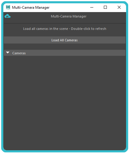 Switching between cameras in Maya usually takes 3 clicks, which can greatly slow down one's workflow. The Multi-Camera Manager cuts that down to just one click by offering the user a simple GUI. After clicking the "load cameras" button, a list of buttons, one for every camera in your scene, appears. From there, all you have to do is click on the name of your desired camera and the 3D viewport will automatically switch to its perspective. And if you ever add, delete, or re-name cameras, you simply can re-load the list with one click.